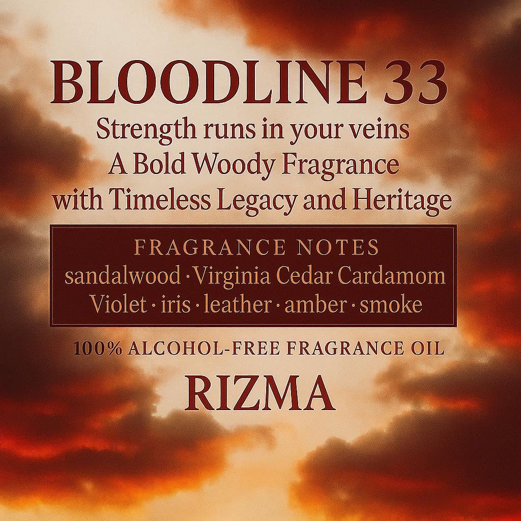 Bloodline 33 is our impression of Santal 33 — a cult-favorite fragrance blending creamy sandalwood with violet, leather, and cardamom. A powerful unisex scent that is bold yet sensual, perfect for making your signature statement.