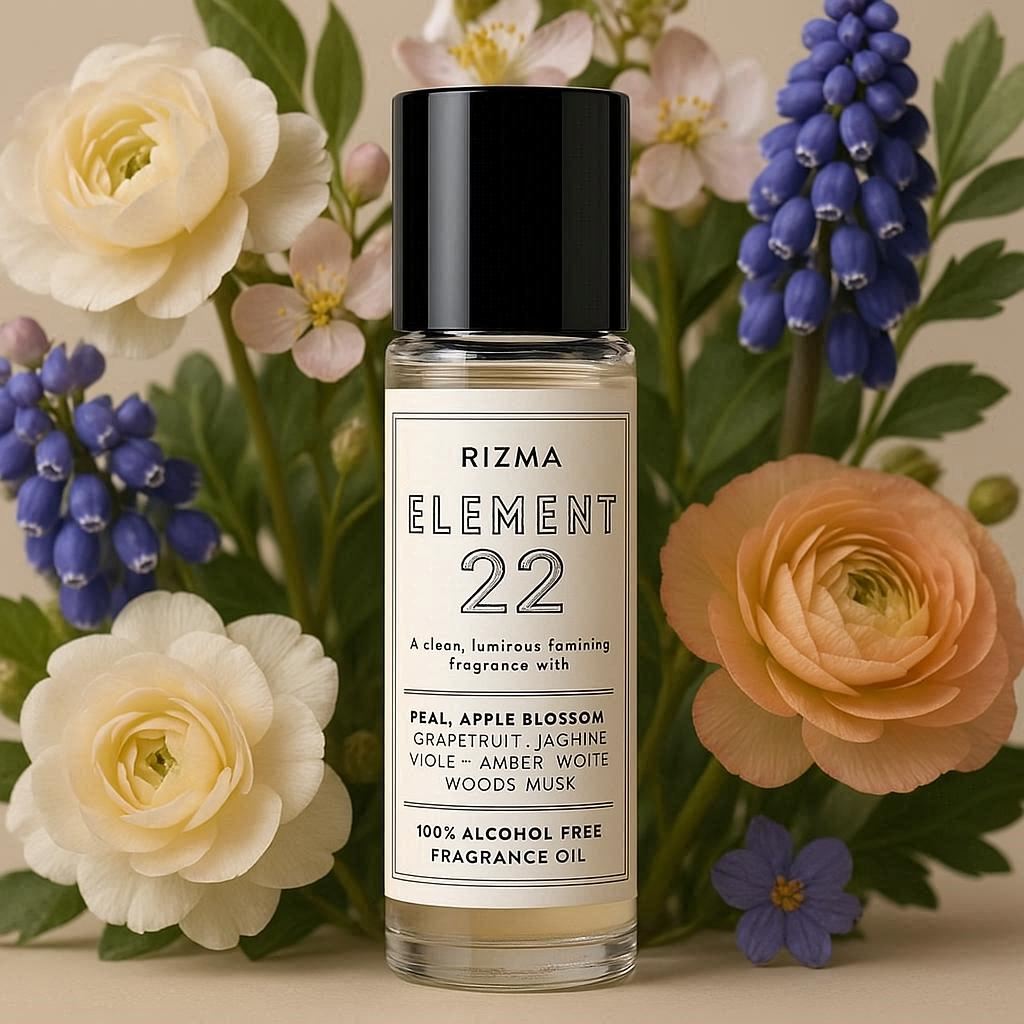 Element 22 is an elegant fragrance crafted for the modern woman. Bright citrus and delicate florals intertwine with soft musk and creamy woods, creating a refined scent that transitions seamlessly from day to night.