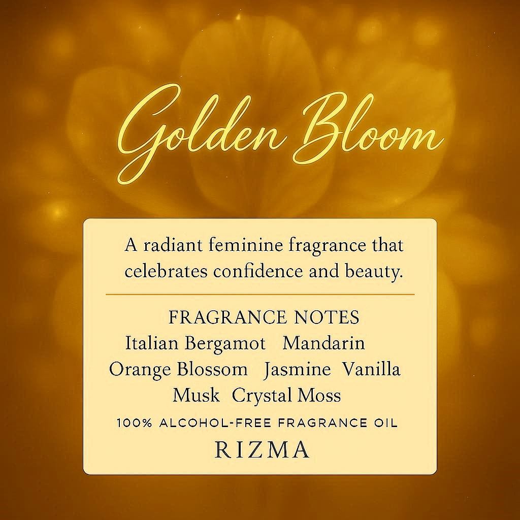 Golden Bloom is a radiant fragrance with luminous florals and golden woods. Sparkling citrus mingles with rose and peony, finishing with amber and musk for a trail that feels effortlessly feminine.