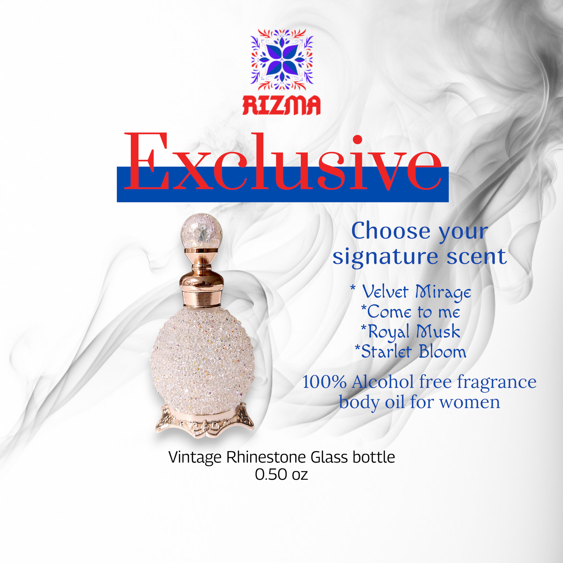 RIZMA Exclusive Fragrance oils- your choice of fragrance in a Vintage Rhinestone Glass Bottle | Choose your Signature Scent
