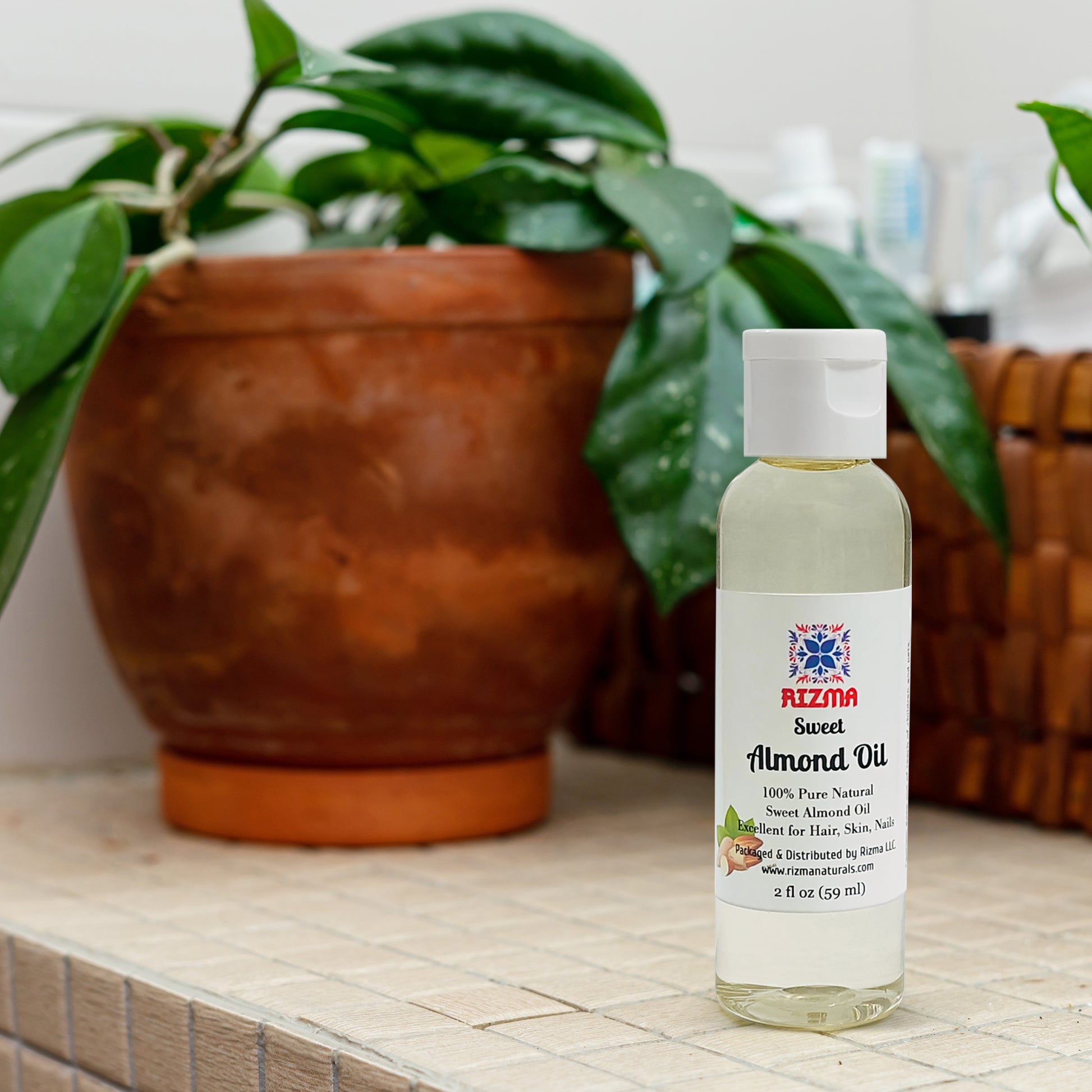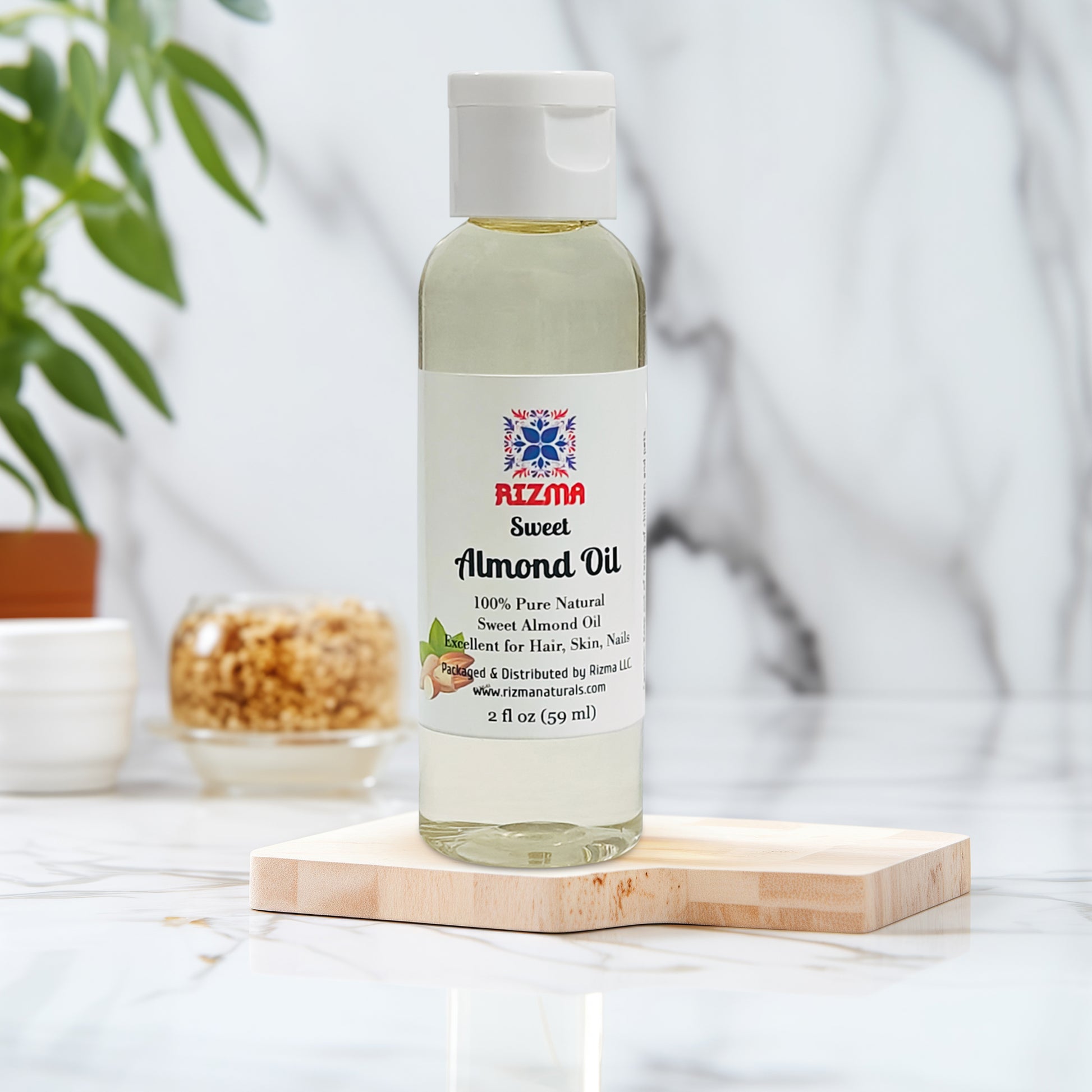 Indulge in the luxurious benefits of RIZMA's 100% Pure and Natural Sweet Almond Oil. This travel-size 2oz bottle is perfect for on-the-go nourishment and hydration. Sweet almond oil is renowned for its lightweight yet deeply moisturizing properties, making it an ideal choice for revitalizing your skin, hair, and nails. Packed with vitamins and essential fatty acids, this versatile oil absorbs effortlessly into the skin, leaving you feeling pampered and rejuvenated. Whether you're seeking a nourishing facial treatment, a hair-strengthening serum, or a cuticle-softening elixir, this pure and natural sweet almond oil is a must-have in your beauty arsenal. Experience the indulgence of nature's finest ingredients with every drop.